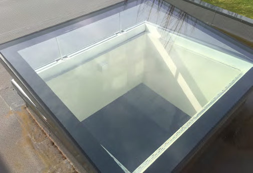 • For stock sizes of Hinged Flatglass rooflights, our standard glass specification is as follows: 6mm clear glass heat soak tested toughened outer pane, with a 20mm argon filled (90%) cavity plus warm edge spacer and a 6mm clear glass Low-E heat soak tested toughened inner pane, all UV resistant silicone bonded.