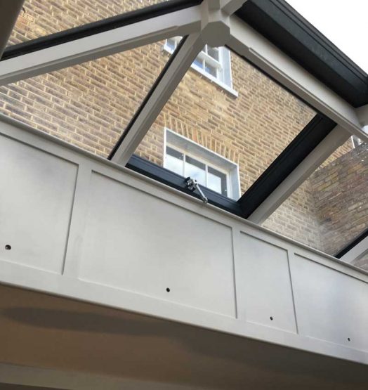 This London property needed to allow maximum light into the dining area, due to the linear nature of the property. With a rooflight allowing 40% more light into a room than a conventional vertical window, the architects chose this bespoke patent glazed roofing system, with an opening vent. They used the latest colour of Anthracite Grey to complement the roof.