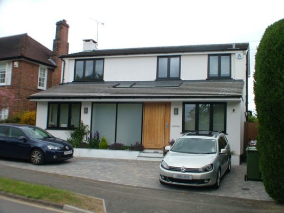 What a transformation.  This unattractive and badly proportioned 1960s property in Radlett had a new extension combining the use of glass, to allow maximum light into the property. The rooflight  in the entrance hall, and the use of glass panels instead of walls, bathed the property in light. The property was re-born, uplifting and full of light.