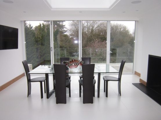 This beautiful traditional house, had an extension to open out the back of the house, to include new living areas. The customer wanted to be able to open out each of the new living areas so they were seamless to the outside. The Air 800 bi-fold system was used as it allowed the customer larger panels and super slim slightlines, allowing them great views to their garden.